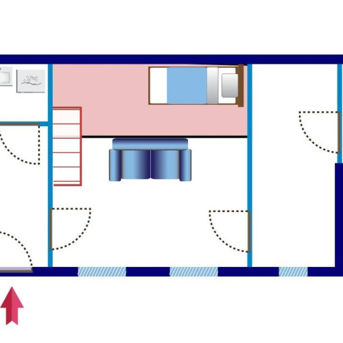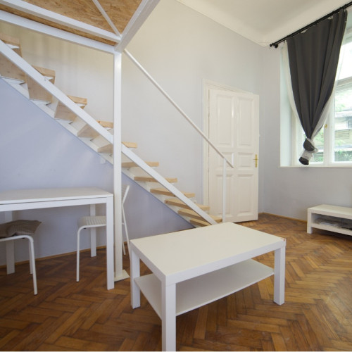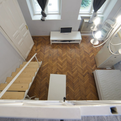 Furnished apartment for rent in the city center, 40 sqm, with a gallery on the first floor, near Klauzal Square, on Akácfa Street.