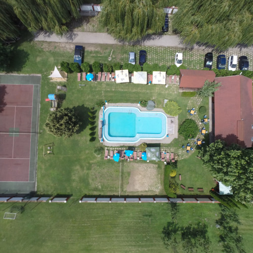 Szórakoztató és sportlétesítmények – kültéri medence, strandröplabda-pálya, sportpálya, kerti grill, játszótér