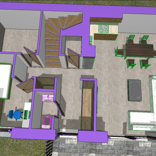 A házba belépve egy kényelmes méretű előszobába érkezünk. Az előtérből nyílik egy külön WC kézmosóval. Jobbra egy IGAZÁN TÁGAS NAPPALI KONYHA-ÉTKEZŐVEL egy légtérben, ahonnan közvetlenül léphetünk ki a TÁGAS, 18 M2-NYI, NYUGATI FEKVÉSŰ, BURKOLT TERASZRA. A konyha mellett egy kamra is kialakításra kerül. A kamra mellett egy közlekedő van, melyből a tetőtérbe vezető lépcső érhető el. A közlekedő végéből nyílik egy 8,25 m2-es szoba, mellette a háztartási helyiség, melyben a gépészet kap helyet.
