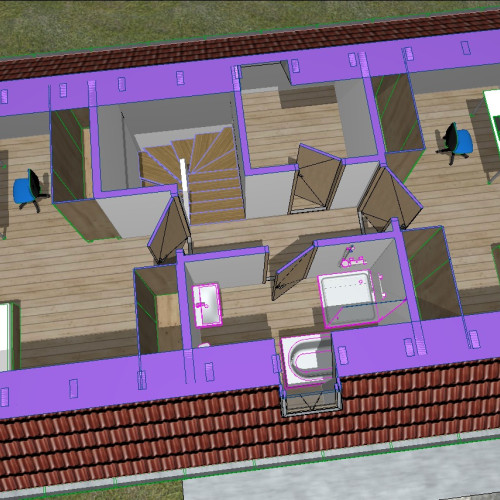 A MODERN, 91 m2-es, tetőtér beépítéses családi ház külön utcáról megközelíthető, 417 m²-es telken valósul meg. Kulcsrakész átadása 2027. tavaszra várható. A kiváló tájolású telekről körbe tekintve POMPÁS PANORÁMÁBAN gyönyörködhetünk a bakonyi dombokra és a Balatonra egyaránt.