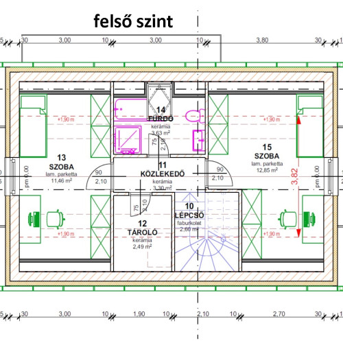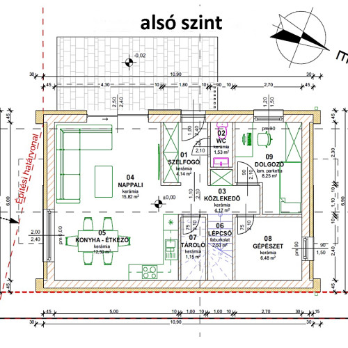 - 15 cm-es hőszigetelés az aljzatban