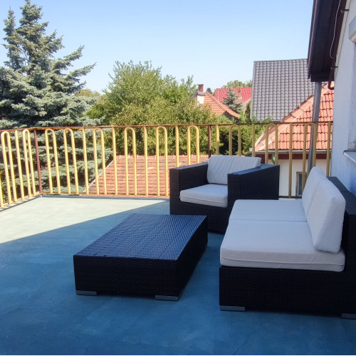 PANEL ÁRBAN TETŐTERASZOS lakás - KERTES HÁZBAN, madárcsicsergésben élhet!